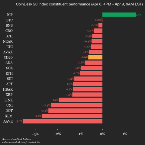 9am CoinDesk 20 Update for 2026-04-09: vertical