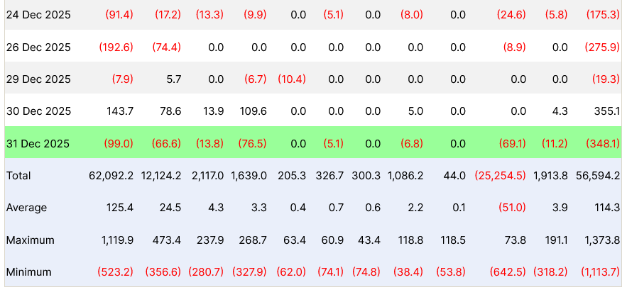 Spot Bitcoin ETF flow data from Dec. 24 to Dec. 31. Source: Farside Investors